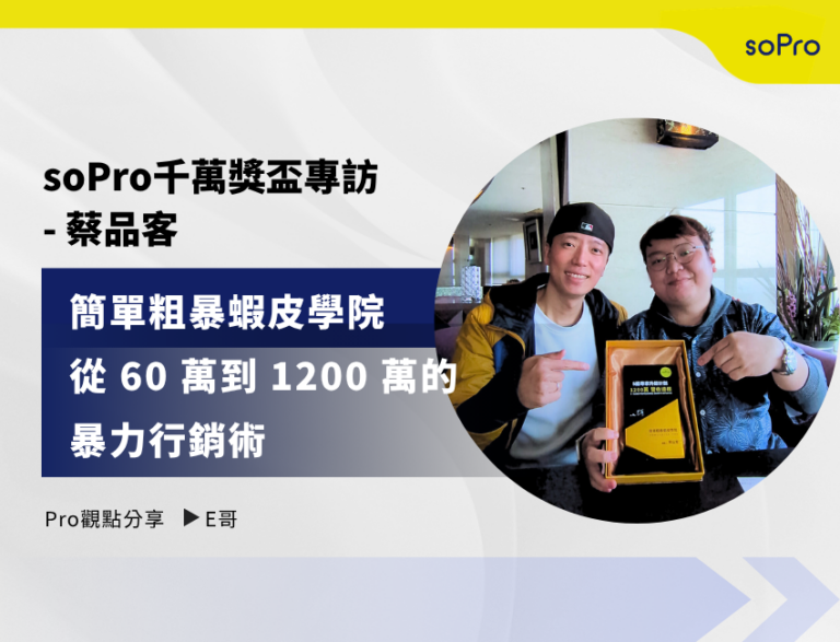 🏆soPro千萬獎盃專訪 – 蔡品客|簡單粗暴蝦皮學院如何從 60 萬到 1200 萬的 暴力行銷術 全解析