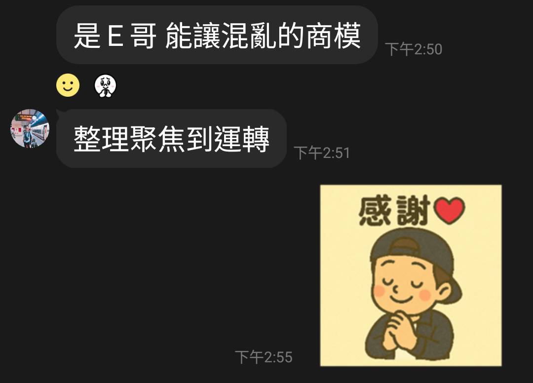 「是E哥 能讓混亂的商模,整理聚焦到運轉。」