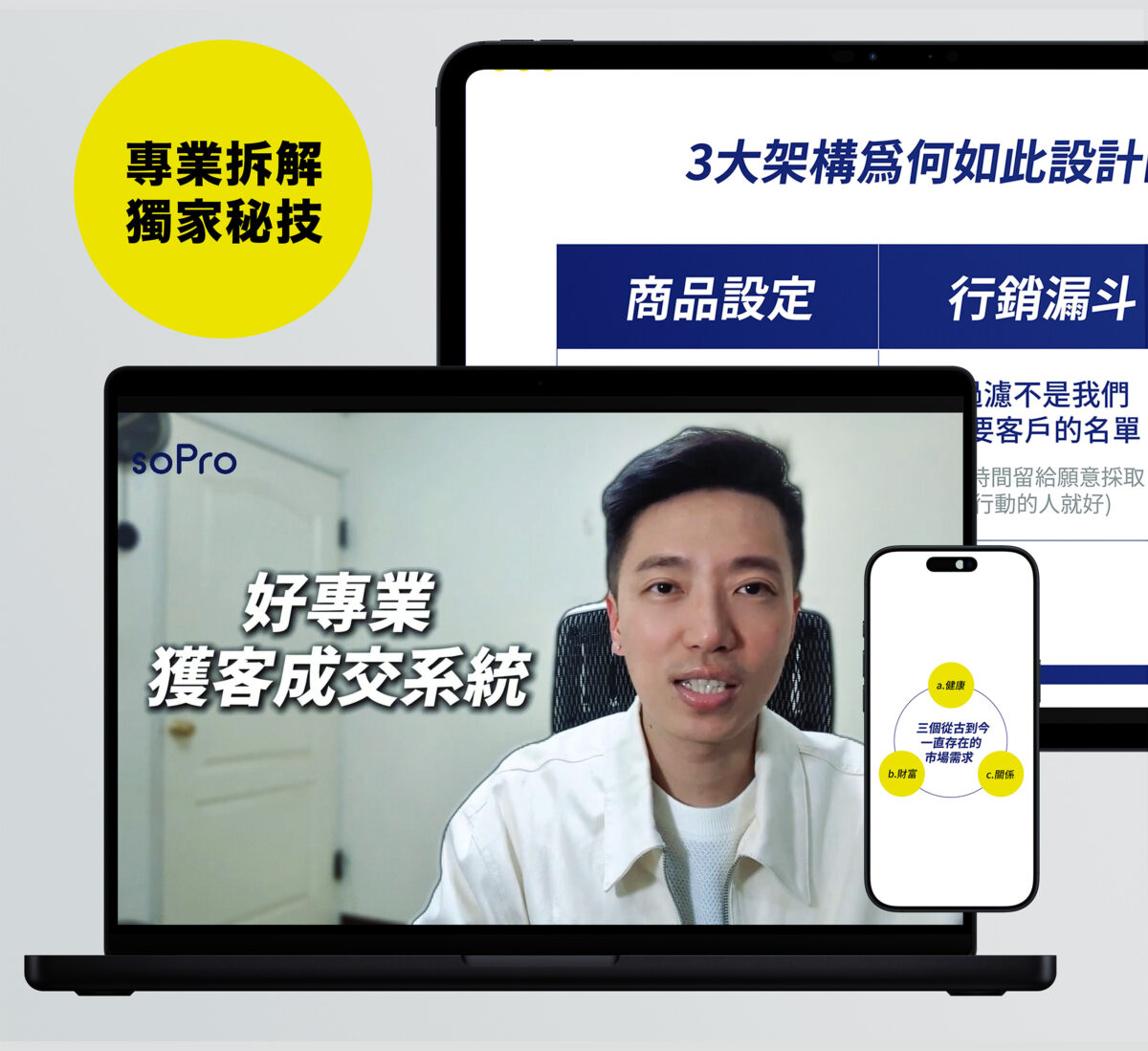這段 10 分鐘的影片,將為你展示我們是如何透過 soPro獲客成交系統」 ,協助像你這樣的S級專家,在 90 天~180天突破營收天花板,奪回生活主導權。